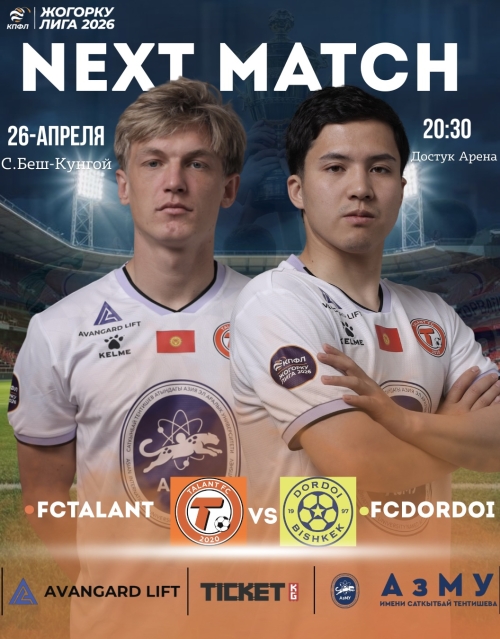 В рамках 8-го тура Высшей Лиги Кыргызстана состоится захватывающий матч между командами «Талант» и «Дордой»!